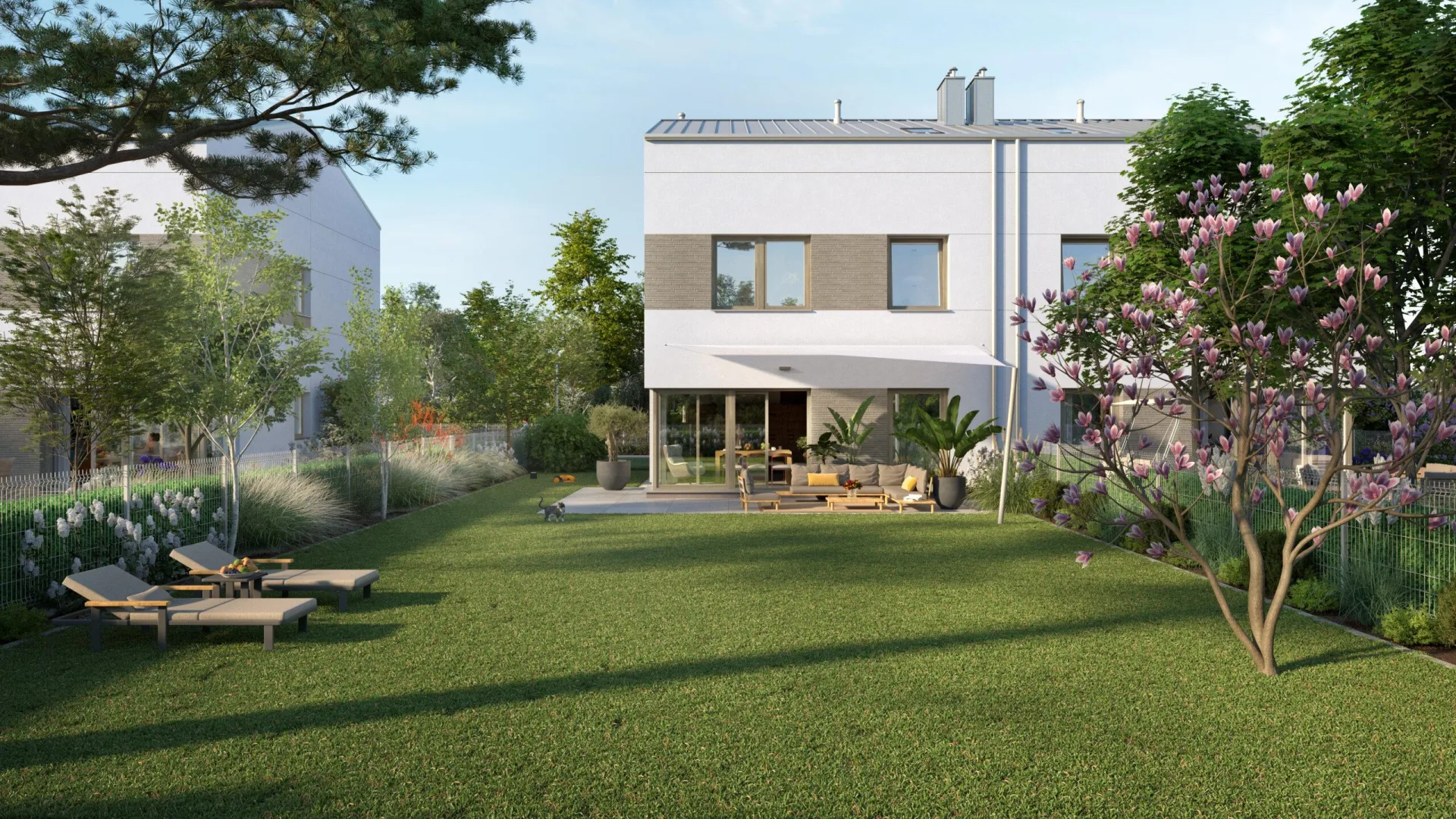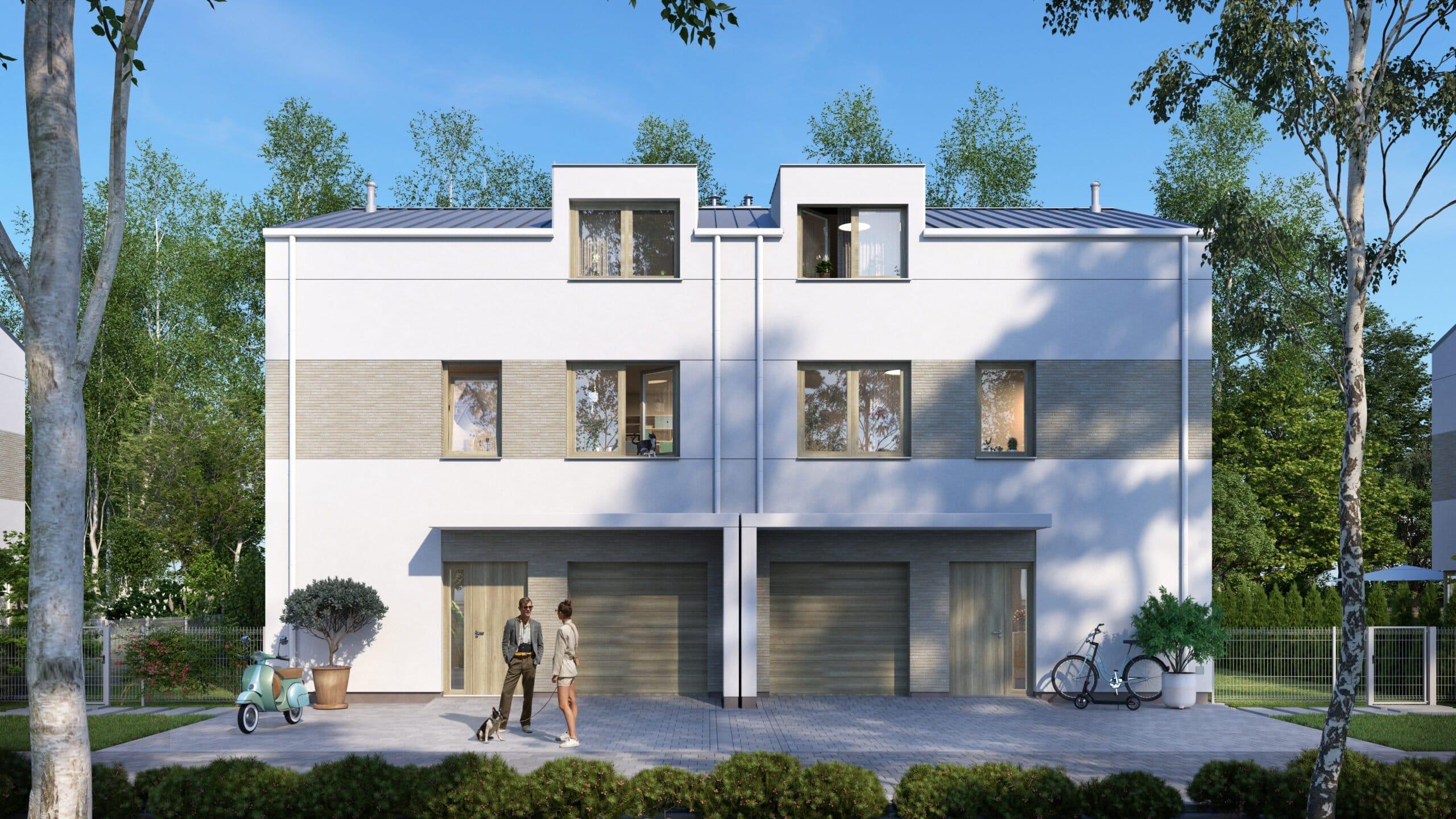 Dodatkowym atutem domów są duże działki o powierzchni nawet 430 m2 z ekspozycją południową. Każdy dom posiada garaż oraz miejsca postojowe przed budynkiem.